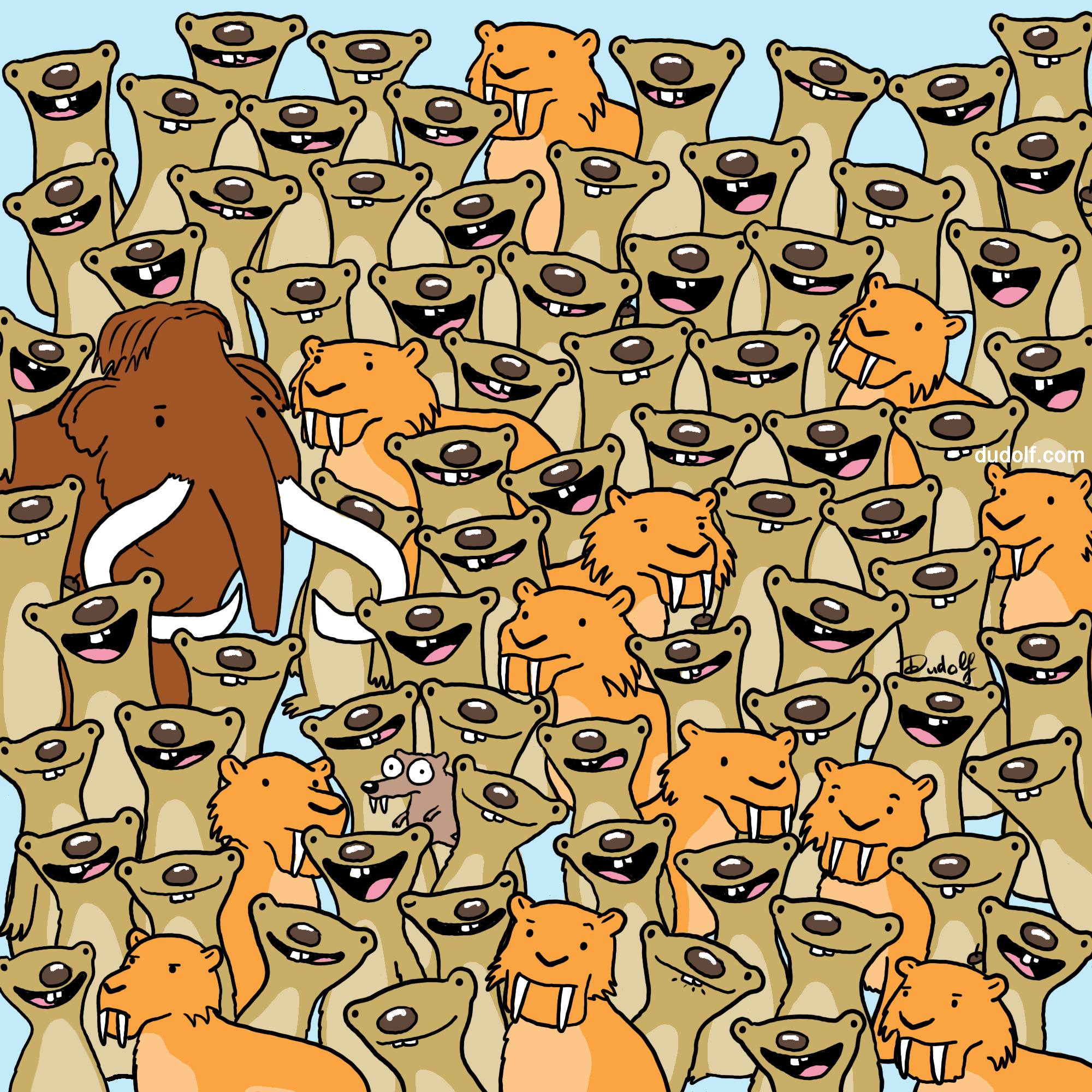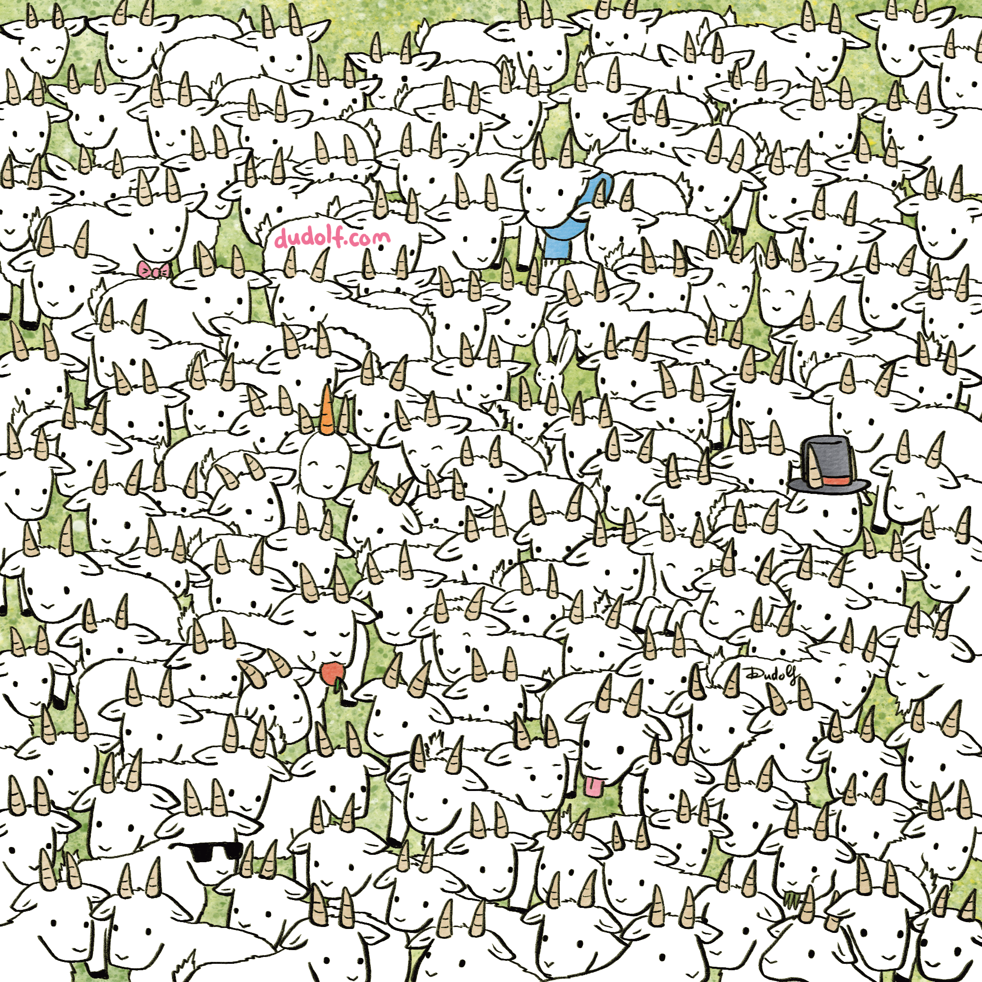 Oggi Oreste vi sfida con le sue amate tavole di Dudolf, artista ungaro che crea illustrazioni piene zeppe di animali, oggetti e persone molto simili, tra i quali nasconde degli intrusi invisibili.
